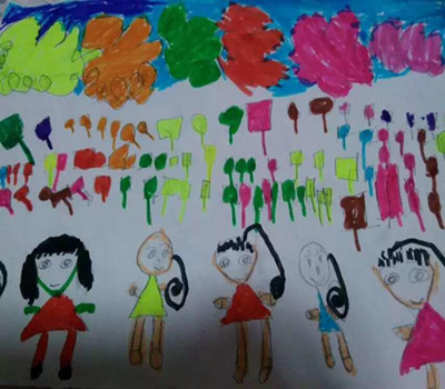 就这样,一个精彩的故事通过彩绘跃然纸上:一只纸折小鱼诞生。无论作品的好坏,我都会仔细欣赏她的作品,聆听她创作的故事。我会选择一些作品,张贴和摆放在某个地方展示、表扬,鼓励孩子继续创作。孩子绝对有把一张白纸变得丰富多彩的能力。在一张白纸的世界里她的想象力和创造力得到延伸和实现,对孩子来说是成就和鼓励。她非常喜欢并欣赏她自己的作品。