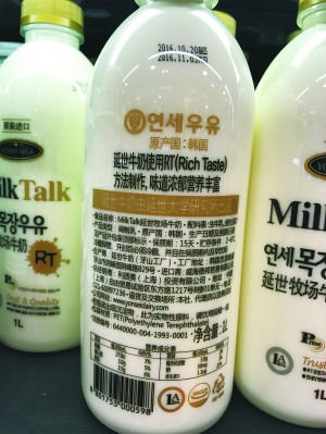在北京某高端超市,最为集中的原装进口奶来自于韩国,南阳牧场牛奶、延世牧场牛奶、济州乐活牛奶三款牛奶是超市销售人员介绍的产品中卖得最火的。不过,这三款牛奶有一个共同的特点,就是产品类型均为调制乳。