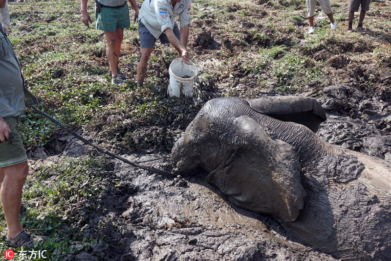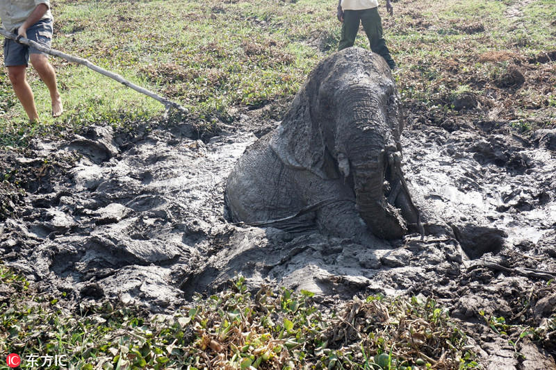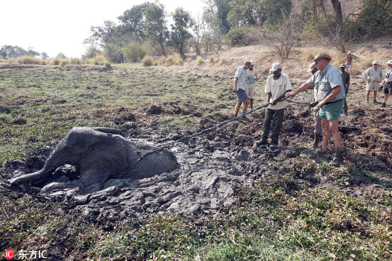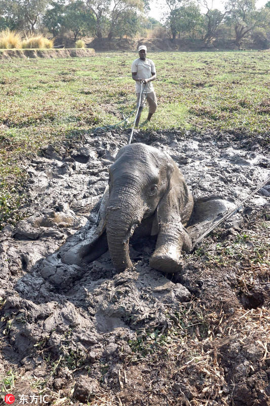 赞比亚小象陷泥潭获救后“讨伐”救助游客