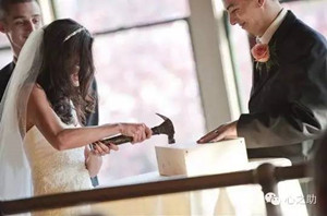 这个盒子叫做“打第一架时的盒子”。新郎新娘会为彼此写一封情书,把它们连同一瓶红酒一起放进这个盒子里,在婚礼上把盒子钉好。结婚以后,当他们第一次吵架时,会把盒子打开,一人倒一杯红酒,各自分开,在自己的角落里把那封情书拿出来读,好好回想一下当初两人是因为什么走到一起的。