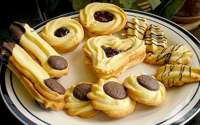 代表年货:曲奇饼干、巧克力、年糕、糖果等