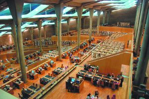 2002年,新亚历山大图书馆落成开放,这项复兴古老亚历山大图书馆的工程由联合国教科文组织倡议,主要建筑设计师是德裔美国人克雷格·戴克斯(Craig Dykers)与他的年轻同事以及挪威斯诺赫塔建筑事务所。1988年,几位无名建筑师在洛杉矶的一个阁楼上绘出蓝图,从全球竞标的一千四百件设计方案中脱颖而出。建筑设计极具现代意识,图书馆似削去顶端的半圆倾斜面向地中海,阅览大厅像梯形教室分布在七个层面上,完美体现了图书馆空间的开放理念。