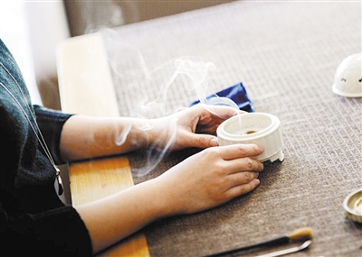 第三步:轻轻地用右手拿起灰押压香灰,把香灰压平整,同时用左手扶着香炉逆时针转动,一遍一遍,直到香灰表面保持光滑与平整。