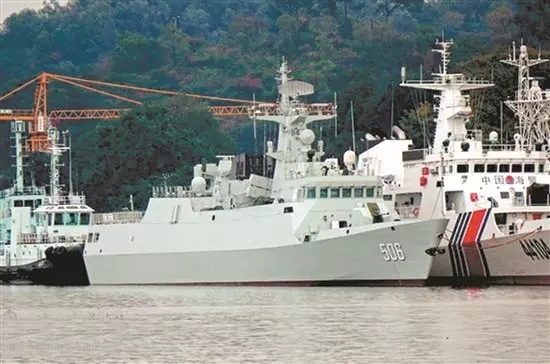 2016年6月8日入列。曲靖舰是我国自行研制建造的新一代轻型导弹护卫舰,舷号“508”,满载排水量1300余吨。该舰装备了多套我国自主研发的新型武器装备,信息化程度高,隐身性能好,可单独或者协同海军其他兵力攻击敌水面舰艇、潜艇,具有较强的防空、反潜和对海作战能力。