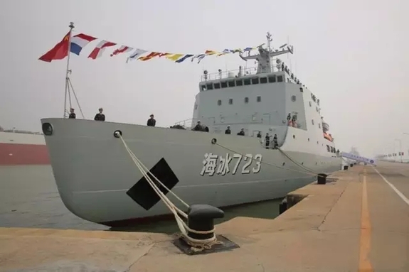 2016年3月17日入列。海冰723船,船长103.1米,型宽18.4米,满载排水量4860吨,是我国自主研发的第二艘新型破冰船。该船作为海冰722船的姊妹船,同样具有TC6级破冰能力,可连续破除1米以下当年冰。入列后,该船将与海冰722船共同承担以黄渤海海域为主的冰情调查和破冰,对冰区被困船舶、人员进行搜救,以及电子试验保障、巡逻、警戒、护航等任务。