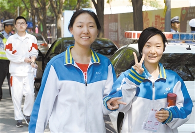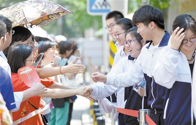 不问“考得怎么样?”一位老师对迎面而来的考生招手,很贴心地说:“加油!”“快回去好好休息!”