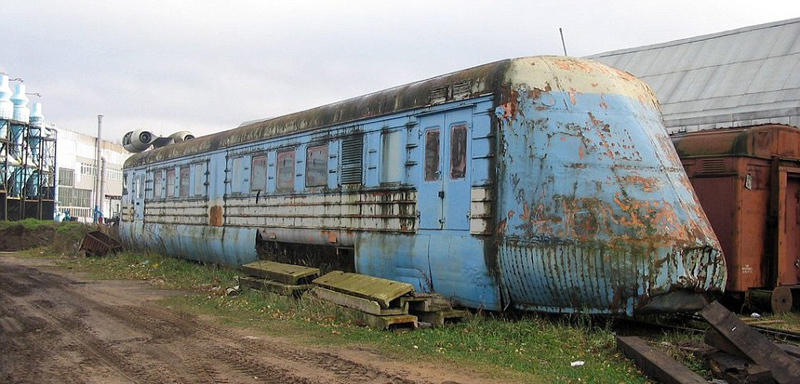 该“喷气式机车”原建于20世纪70年代,这种机车将喷气式飞机的发动机置于车顶,时速高达160英里(约257.5千米),曾为苏联提供了高速火车运输服务,后来却因高耗油而遭到弃用。