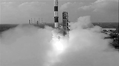 图① 印度用PSLV-C37运载火箭成功实现“一箭104星”发射。