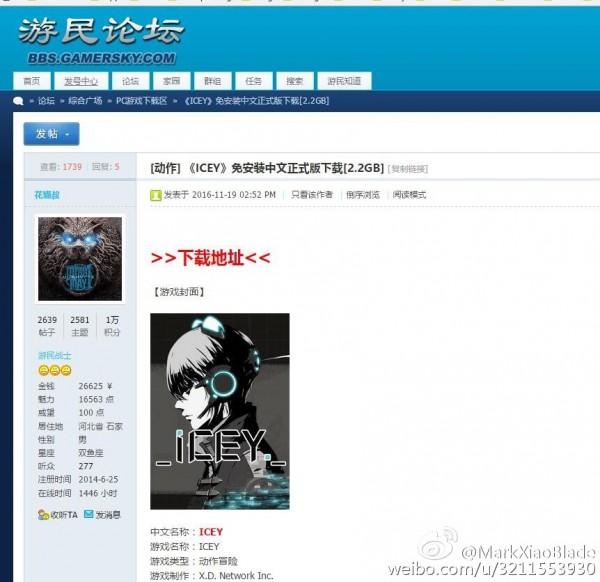 国产单机大作《ICEY》上线2天遭破解:老板怒告游民星空