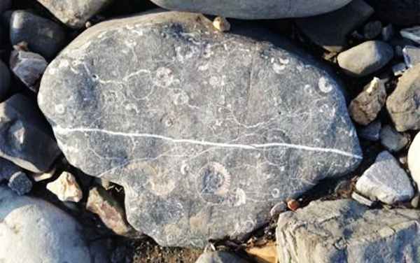 玛丽家乡的查茅斯-莱姆海滩上,到处能找到各种化石,图为菊石类动物(现代鹦鹉螺的祖先)化石。(图片来源:英国《电讯报》 作者:Tom Chivers)