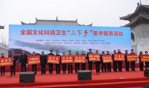 座谈会后,中宣部等12部委与湖北省委、省政府举行文化科技卫生“三下乡”集中服务活动启动仪式,现场开展了农业技术、科学普及、医疗义诊等咨询服务,组织专场文艺慰问演出等。