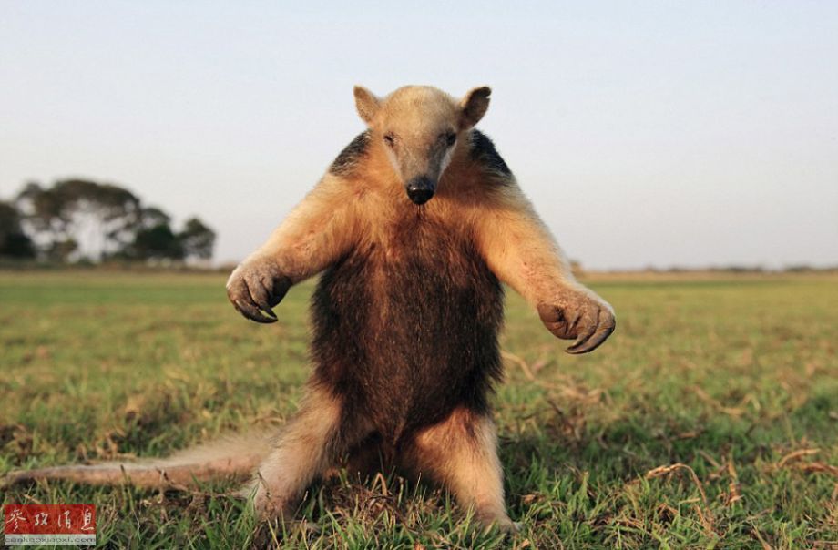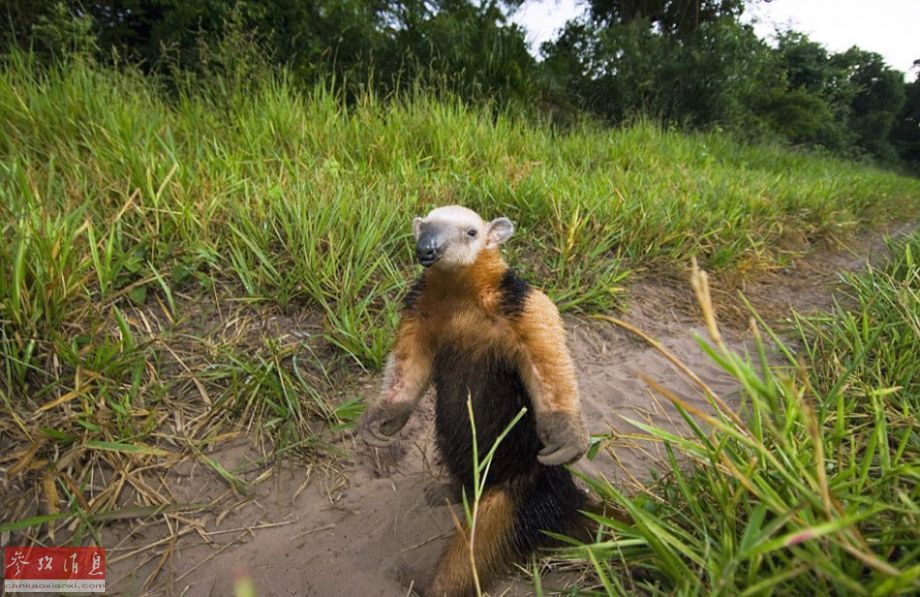这头食蚁兽站起来是想在车前显得自己更高大一点。Candisani立刻抓起相机将这一举动拍了下来,并表示,如果其它动物在这种情况下继续前行,就会得到食蚁兽的一个“紧紧拥抱”:被它尖锐的指甲抓的遍体鳞伤。