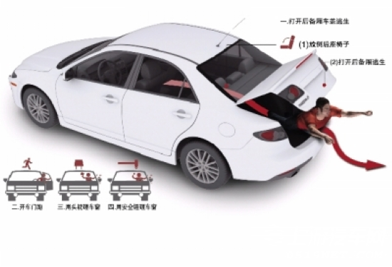 那么,从驾驶员位置爬出,到后排再进入后备箱,最后打开后备箱完成逃生,需要哪些具体的操作过程?